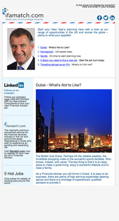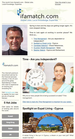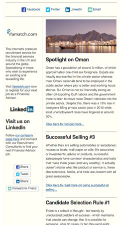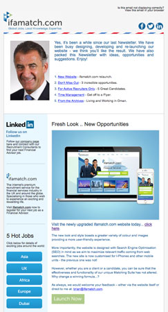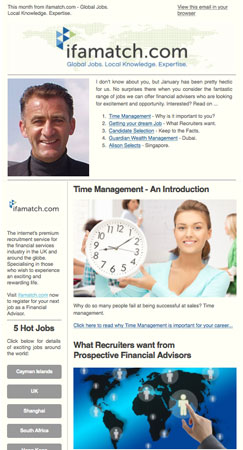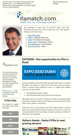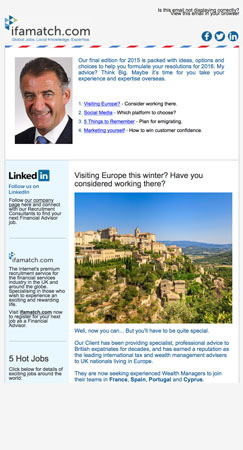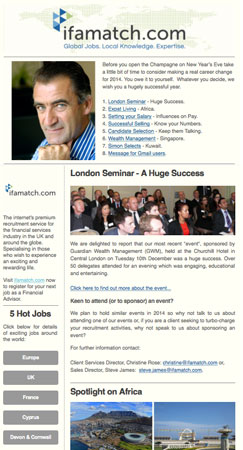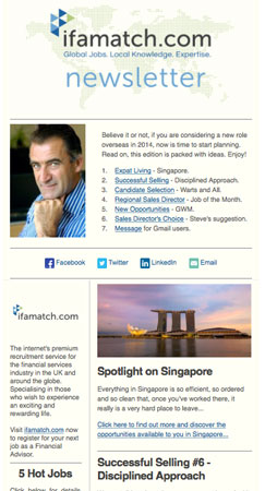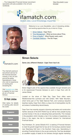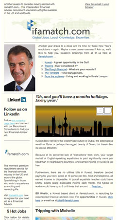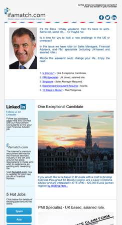 Sent periodically to a targeted database of individuals in and around the Financial Services Industry both in the UK and globally.